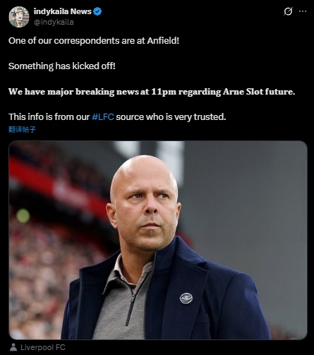 转会信息博主indykaila News(绿帽哥)发布报道称:“我们的一位记者正在安菲尔德!有些大事发生了!我们将在晚上11点(北京时间早上7点)带来关于斯洛特未来的重大突发新闻。这些信息来自我们非常值得信赖的利物浦消息来源。”
